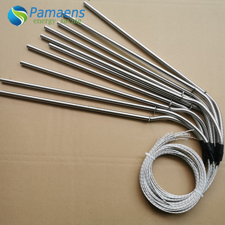 220V 500W High Density Electric Cartridge Heaters are used largely used to heat liquid, solid or gas, the application in plastic industry is very wide, such as hot runner system,small mould heating ,plastic package ,Medical equipment plastic ,plastic injection molding machine nozzle heating, Package and cartridge is also used in the cigarette industry, footwear industry, thermoforming machinery. Small cartridge heaters are largely used for heating 3D printers, which has high wattage density, and could heating up fast and efficiently. We could make the cartridge heater as small as 1mm in diameter, 15mm in length, voltage from 6v to 480v. Wattage density could be as high as 20w/square cm.